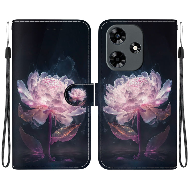 Estuche de Cuero para Infinix Hot 30 con Dibujo Coloreado y Textura de Cristal (Peonía Púrpura)
