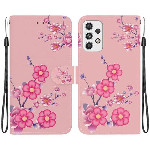 Estuche de Cuero Samsung Galaxy A23 con Dibujo Coloreado y Textura de Cristal (Flores de Cerezo)