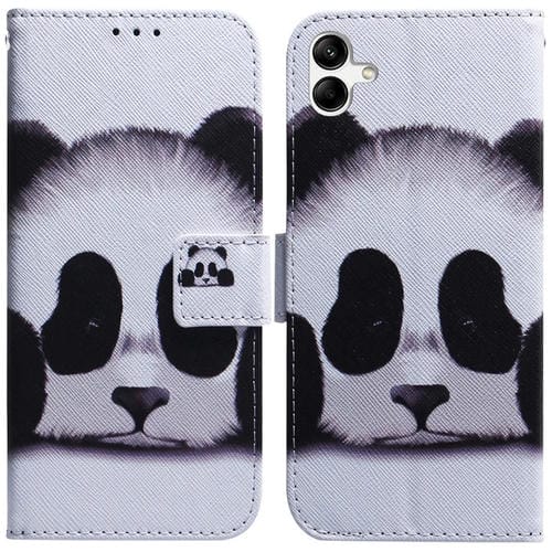 Estuche de Teléfono Samsung Galaxy A04E F04 M04 Cuero con Tapa Dibujo Coloreado (Panda)