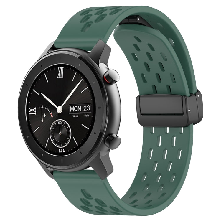Correa de Silicona para Amazfit GTR 42mm 20mm con Cierre Magnético Plegable (Verde Oscuro)