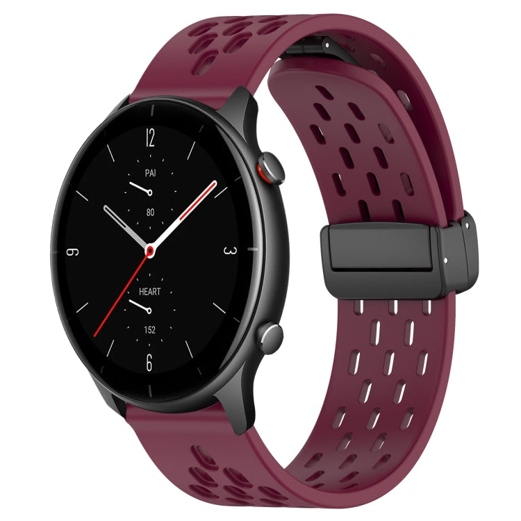 Para Amazfit Gtr 2E Correa de Reloj de Silicona con Cierre Magnético Plegable de 22mm (Borgoña)