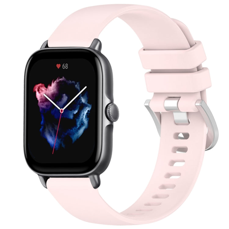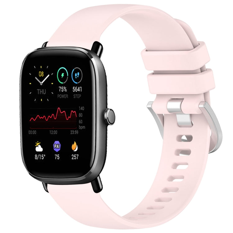 Correa de Silicona para Amazfit GTR 42mm y GTS 20mm con Hebilla Plateada (Rosa)