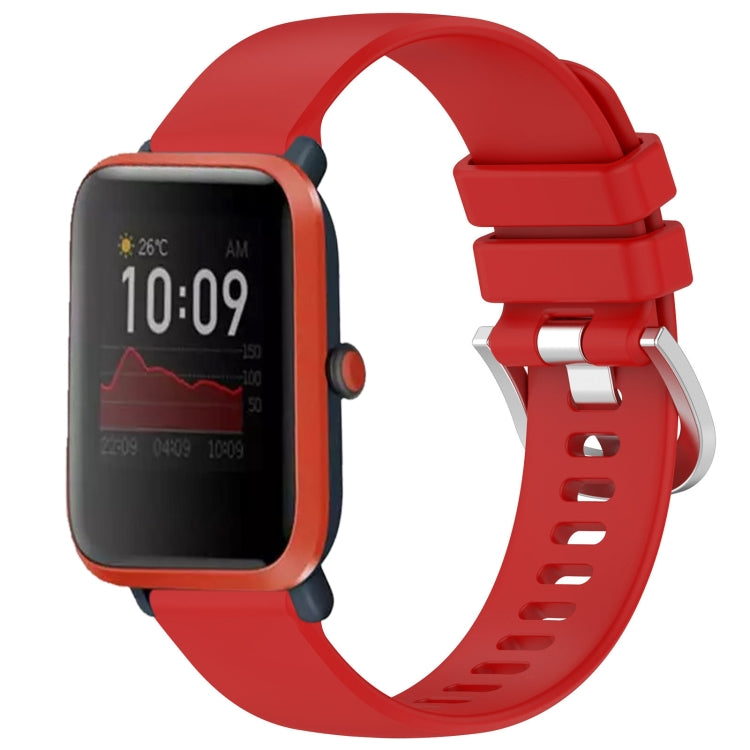 Correa de Reloj Silicona para Amazfit Bip Bip Lite Bip 1S con Hebilla Plateada 20mm (Rojo)