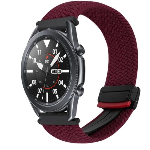 Correa de Reloj Trenzada Samsung Galaxy Watch 3 45mm 22mm con Hebilla Magnética (Rojo Vino)