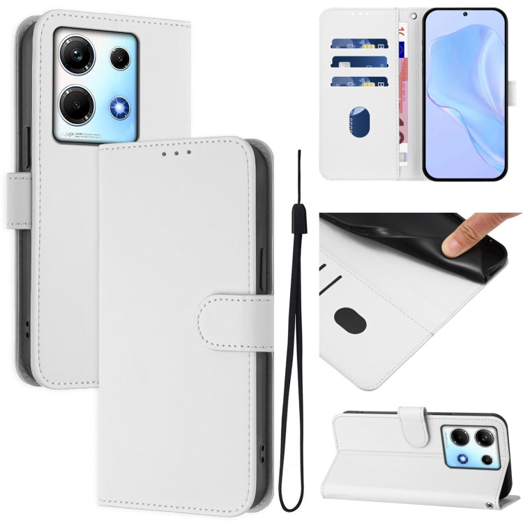 Funda de Cuero con Cordón para Teléfono Infinix Note 30 4G/5G con Tacto de Piel (Blanco)