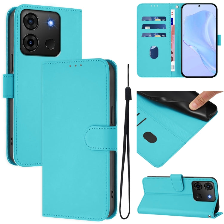 Funda de Piel Sintética con Cordón para Teléfono Infinix Hot 50 4G (Azul Cielo)