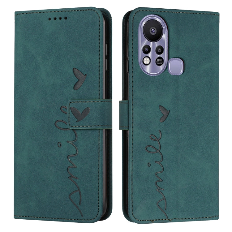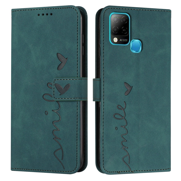 Funda de Cuero para Infinix Smart 6 Skin Feel con Patrón de Corazón y Cordón (Verde)