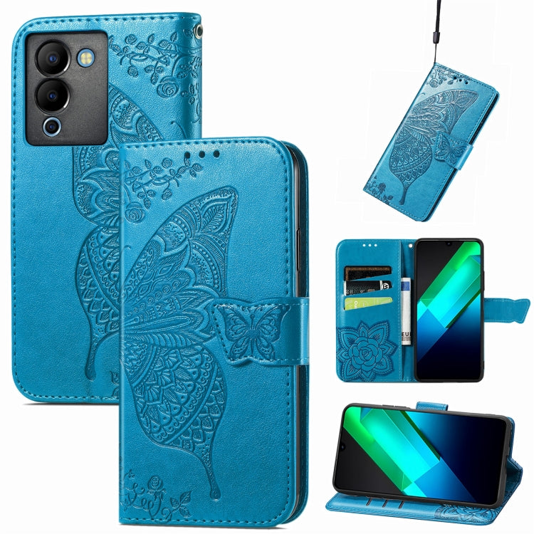 Estuche para teléfono Infinix Note 12 G96 Butterfly Love Flower Cuero en Relieve (Azul)