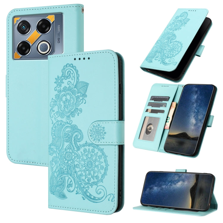 Funda de Cuero para Infinix Note 40 Pro 4G/5G con Tapa en Relieve Datura Flower (Verde Oscuro)