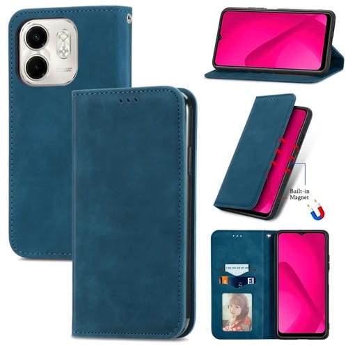 Funda de Cuero para Teléfono Infinix Smart 9 con Tapa Magnética y Tacto Retro (Azul)