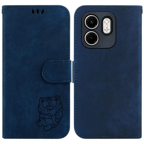 Funda de Cuero con Relieve de Tigre para Infinix Hot 50I Smart 9 (Azul Oscuro)