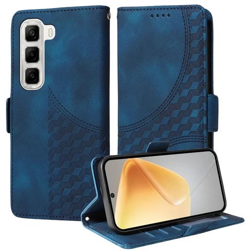 Funda de Cuero para Infinix Hot 50 4G con Diseño de Rombos y Estrellas en Relieve (Azul)