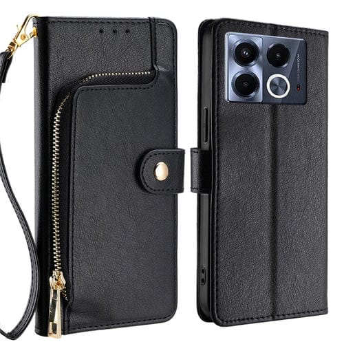 Funda de Cuero con Cremallera para Teléfono Infinix Note 40 5G (Negra)