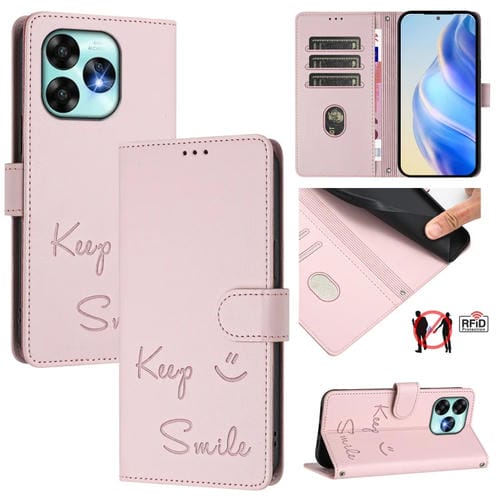 Funda de Cuero Rfid con Relieve Sonriente para Teléfono Umidigi A15/A15C/A15T (Rosa)