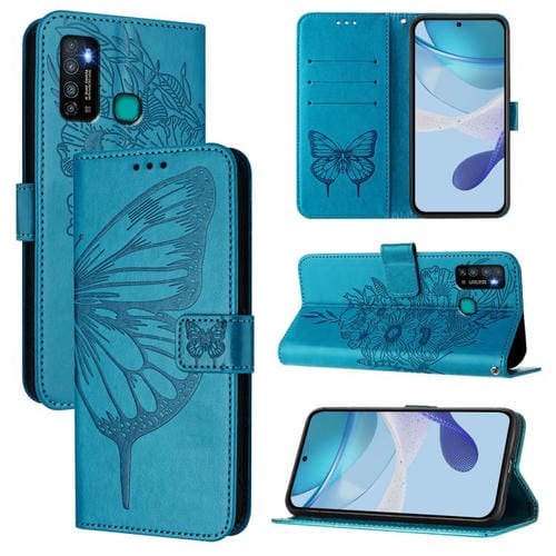 Funda de Cuero para Infinix Hot 9/9 Pro con Diseño de Mariposa en Relieve (Azul)