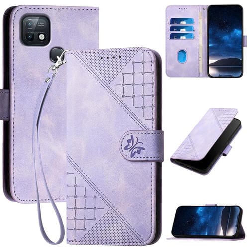 Funda de Cuero con Diseño de Mariposa En Relieve para Infinix Hot 9/9 Pro (Morado Claro)