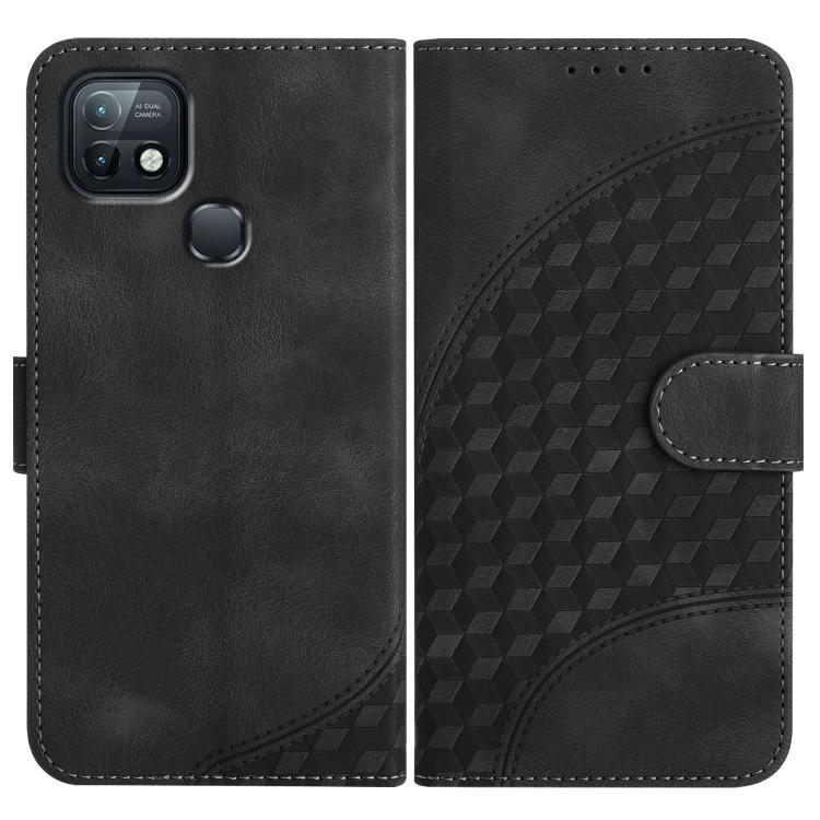 Funda de Cuero con Relieve Cabeza de Elefante para Infinix Smart 6 Plus con Cordón (Negro)