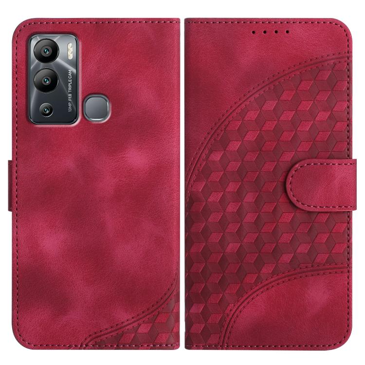 Funda de Cuero para Infinix Hot 20 4G con Diseño de Líneas y Tacto Suave (Rojo)
