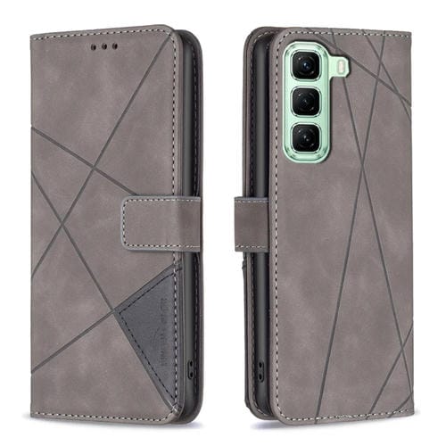 Funda de Cuero Infinix Hot 50 5G con Textura de Rombos y Hebilla Magnética (Gris)
