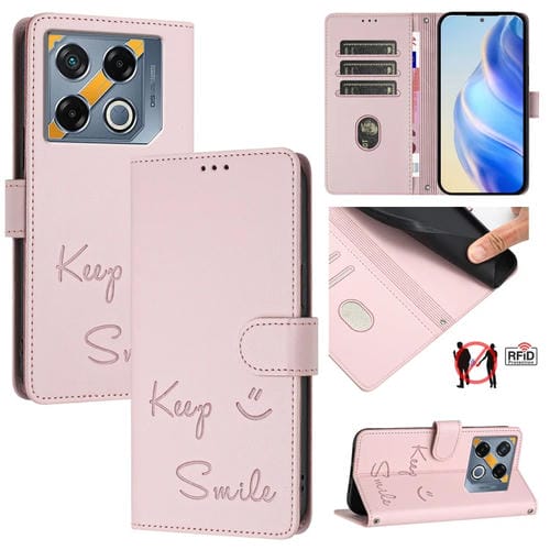 Funda de Cuero Rfid con Relieve Sonriente para Teléfono Infinix Note 40 Pro 5G X6851 (Rosa)
