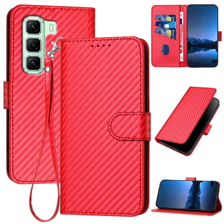 Funda de Cuero con Hebilla de Fibra de Carbono para Infinix Hot 50 4G Yx0070 con Cordón (Rojo)