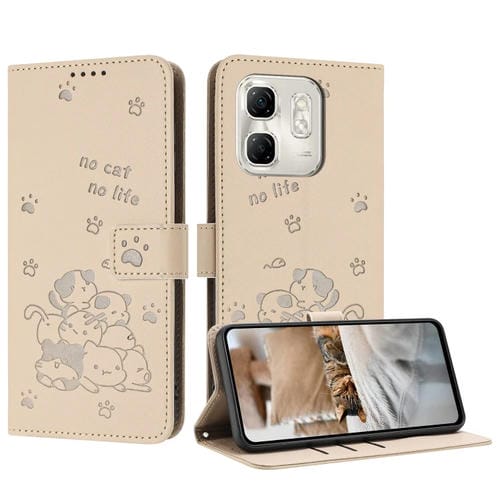 Funda de Cuero Infinix Smart 9 5G Hot 50I 5G con Diseño de Gatito y Cordón (Beige)