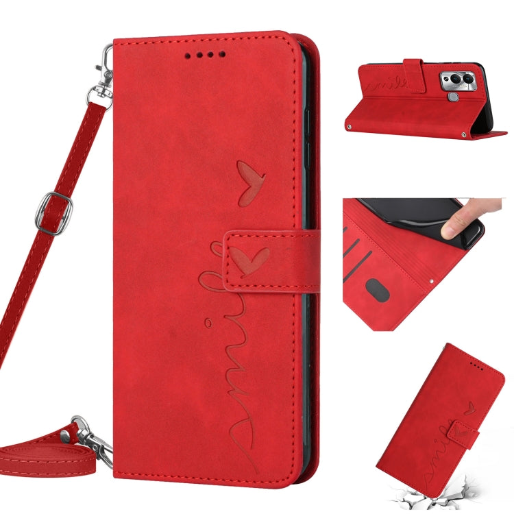 Funda de Cuero para Infinix Note 12I Skin Feel con Patrón Corazón y Cordón (Rojo)