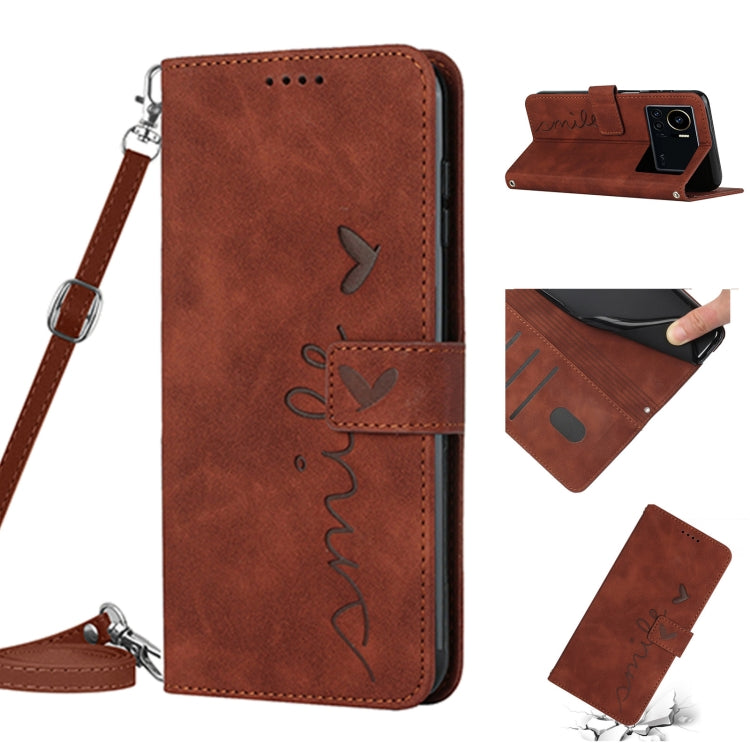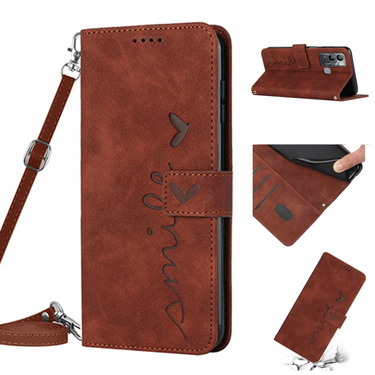 Funda de Cuero para Infinix Smart 6 Plus con Cordón y Skin Feel Heart Pattern (Marrón)