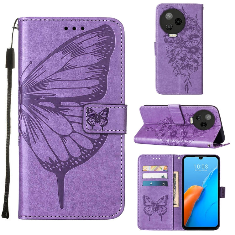 Estuche para Infinix Hot 12 X6817 de Cuero con Tapa Mariposa en Relieve (Púrpura)