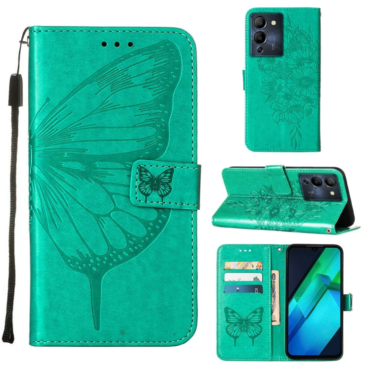 Funda de Cuero para Infinix Note 12 G96 con Tapa de Mariposa en Relieve (Verde)