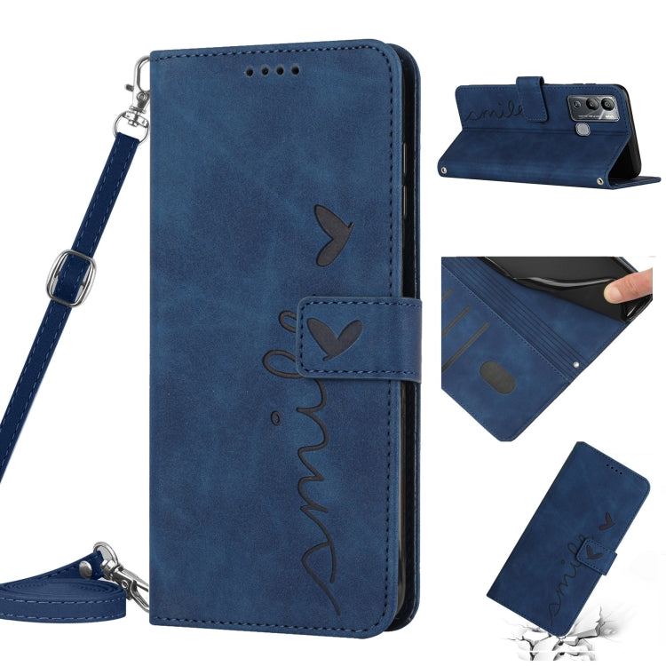 Funda de Cuero para Infinix Smart 6 Plus con Cordón y Diseño Heart Pattern (Azul)