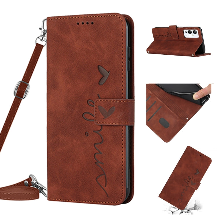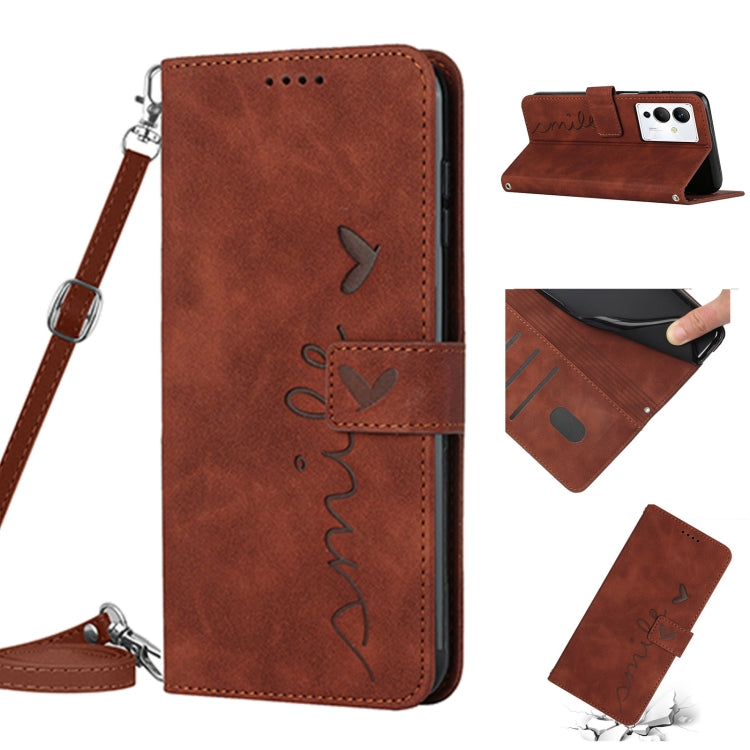 Funda de Cuero con Cordón para Infinix Note 12/12 Pro Skin Feel Heart Pattern (Marrón)