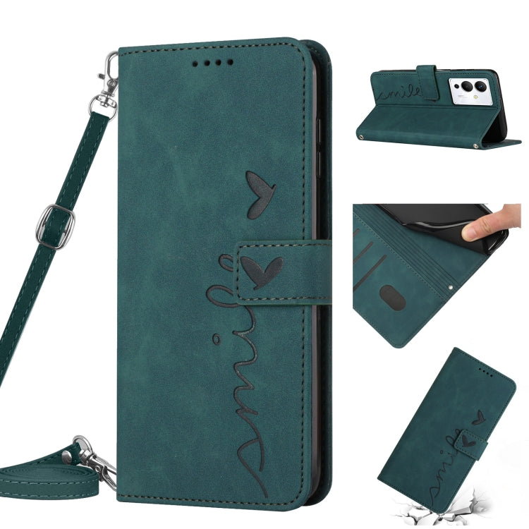 Funda de Cuero para Infinix Note 12/12 Pro con Cordón Skin Feel Heart Pattern (Verde)