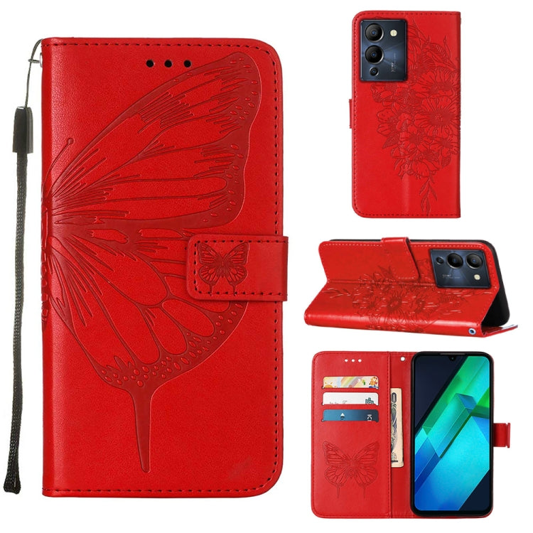 Funda de Cuero para Infinix Note 12 G96 con Tapa de Mariposa En Relieve (Rojo)