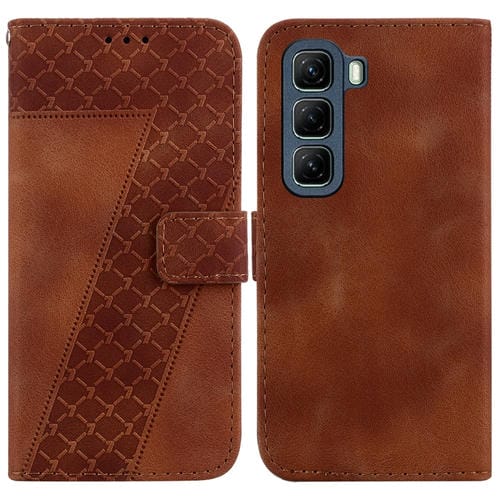Funda de Cuero con Relieve en Forma de Siete para Infinix Hot 50 4G (Marrón)