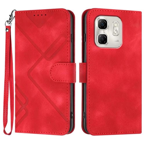 Funda de Cuero para Infinix Hot 50I y Smart 9 con Diseño de Líneas y Tacto Suave (Rojo)