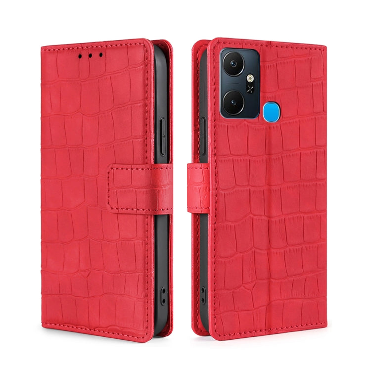 Funda de Cuero para Infinix Smart 6 Plus con Skin Feel Cocodrilo y Cierre Magnético (Rojo)