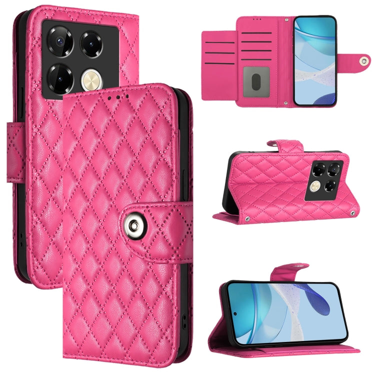 Funda de Cuero con Tapa y Textura Rómbica para Infinix Hot 40 y Hot 40 Pro con Cordón (Rosa)