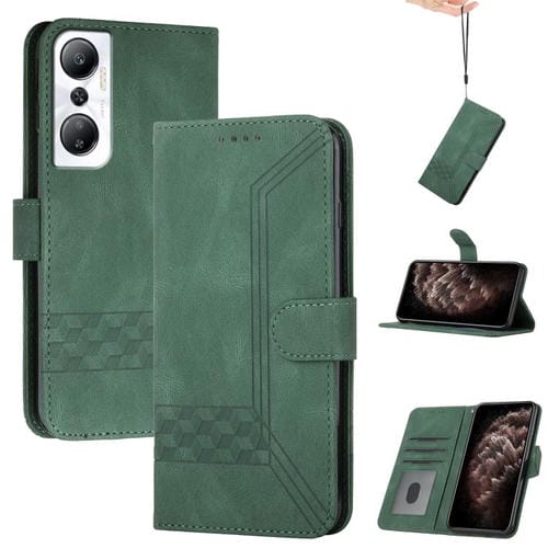 Funda de Cuero con Tapa y Tacto de Piel Cúbica para Infinix Hot 20 5G (Verde)