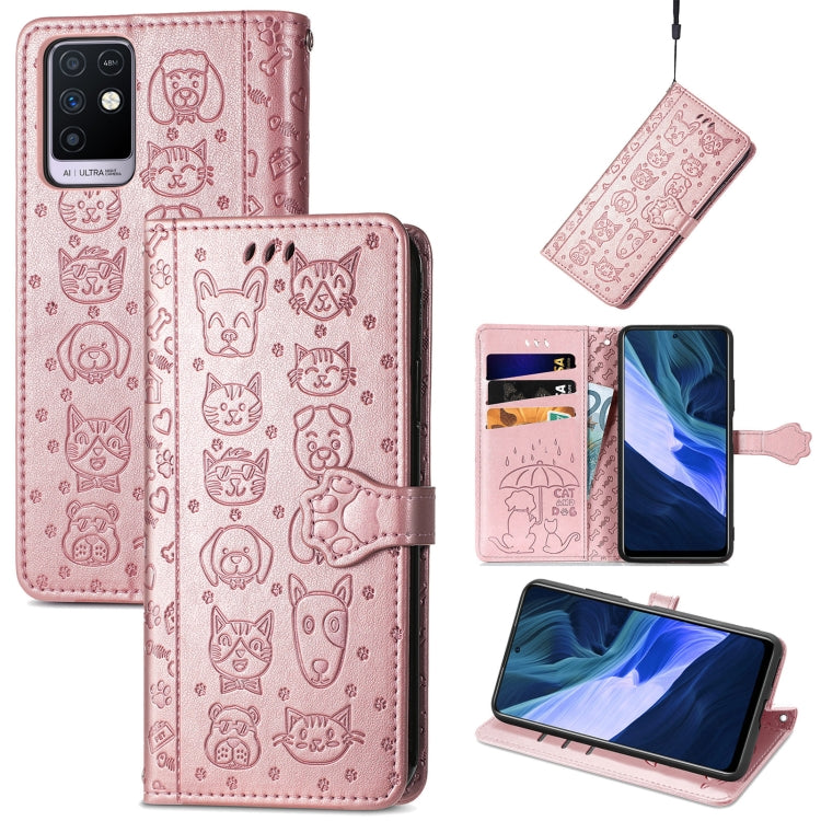 Funda Cuero Horizontal para Infinix Note 10 con Patrón Gato y Perro, Billetera y Cordón (Rosa)