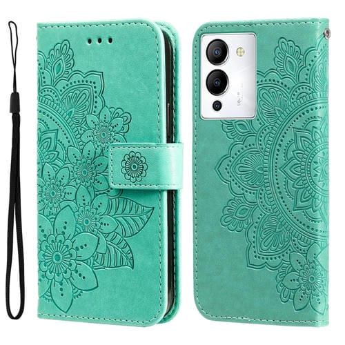 Funda de Cuero para Infinix Hot 20S con Estampado de Flores de 7 Pétalos (Verde)