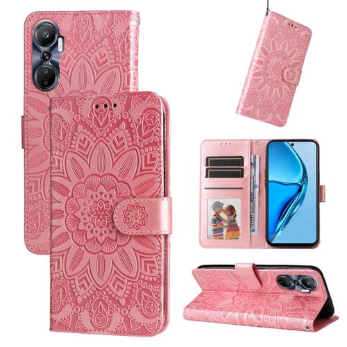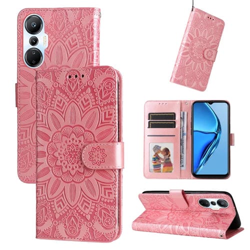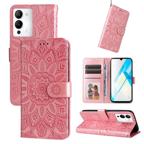 Estuche para teléfono Infinix Hot 20 4G de cuero con estampado de girasol en relieve (Rosa)