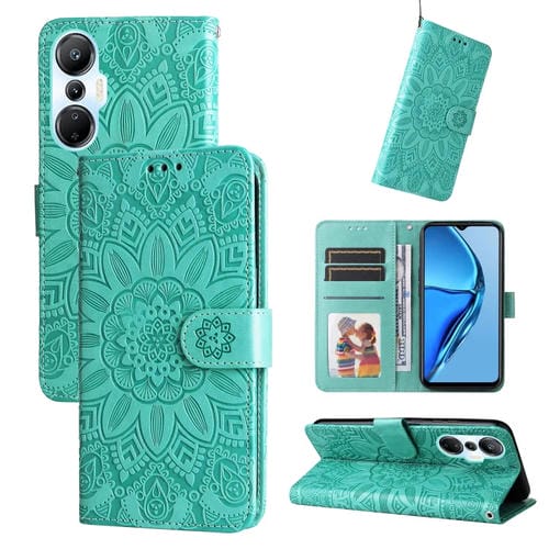 Estuche para Teléfono Infinix Hot 20 4G Cuero con Estampado de Girasol en Relieve (Verde)