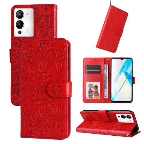 Estuche para Teléfono Infinix Hot 20S Cuero Estampado Girasol en Relieve (Rojo)