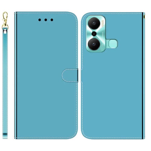 Funda de Cuero para Infinix Hot 20 Play con Tapa de Espejo Imitado (Azul)
