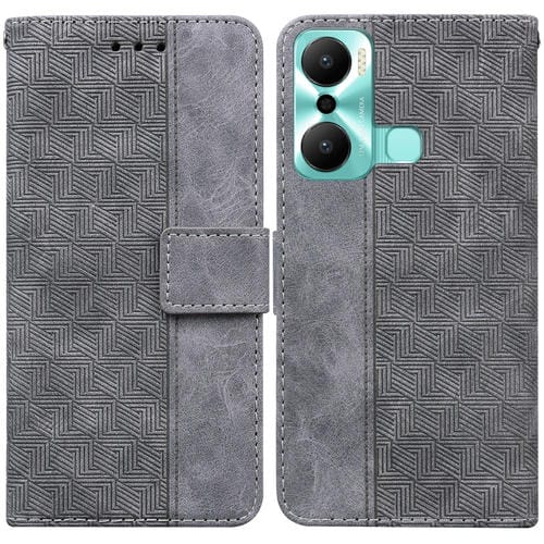 Estuche para Teléfono Infinix Hot 20 Play Cuero con Tapa en Relieve Geométrico (Gris)