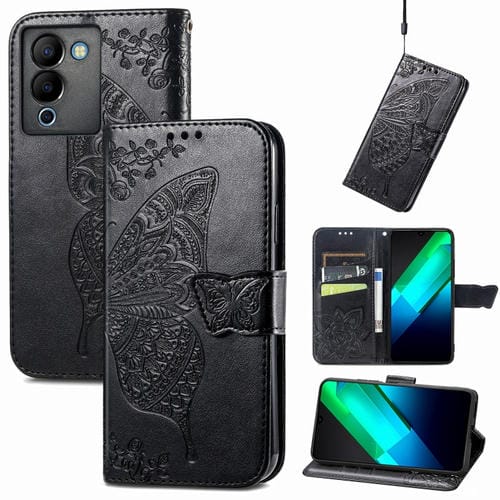 Estuche para Teléfono Infinix Note 12 G96 Butterfly Love Flower Cuero En Relieve (Negro)