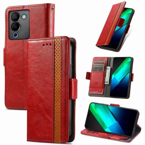Funda de Cuero Caseneo Splicing Dual Magnetic con Hebilla para Infinix Note 12 G96 (Rojo)
