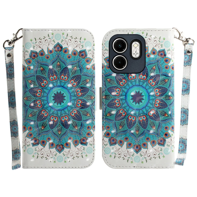 Funda de Cuero con Tapa Horizontal 3D para Infinix Hot 50I y Smart 9 (Corona de Pavo Real)