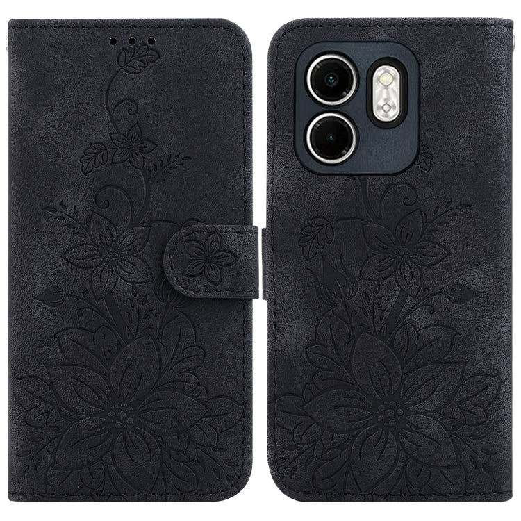 Funda de Cuero con Relieve de Lirio para Infinix Hot 50I Smart 9 (Negra)